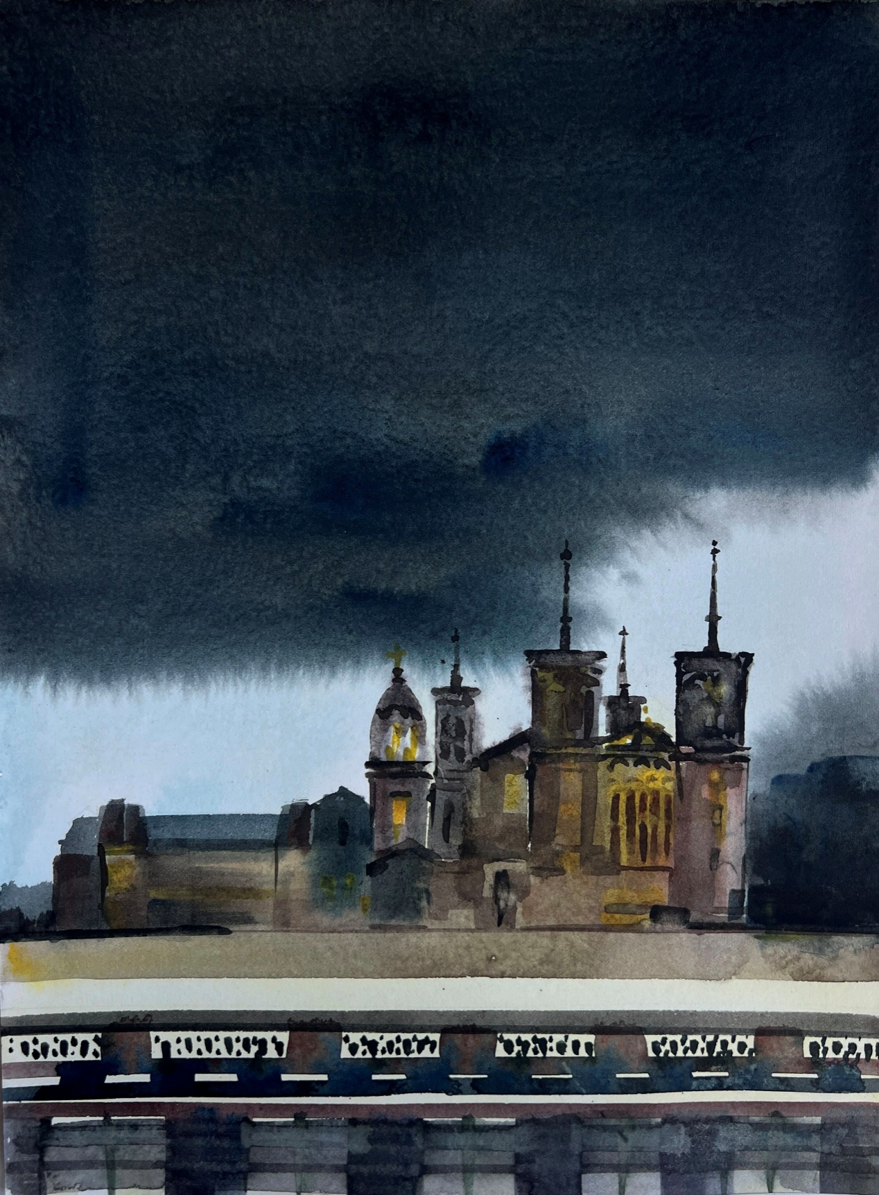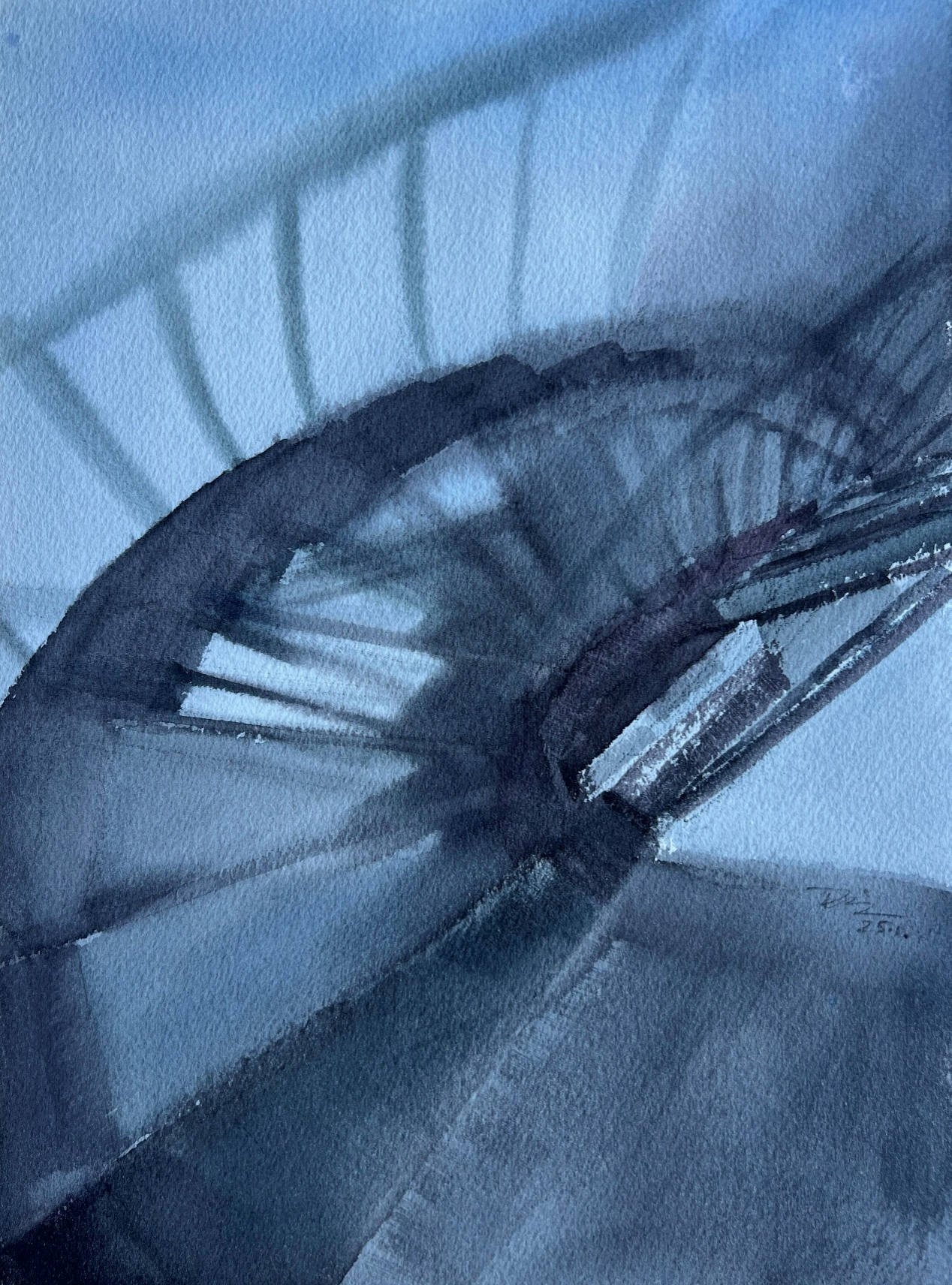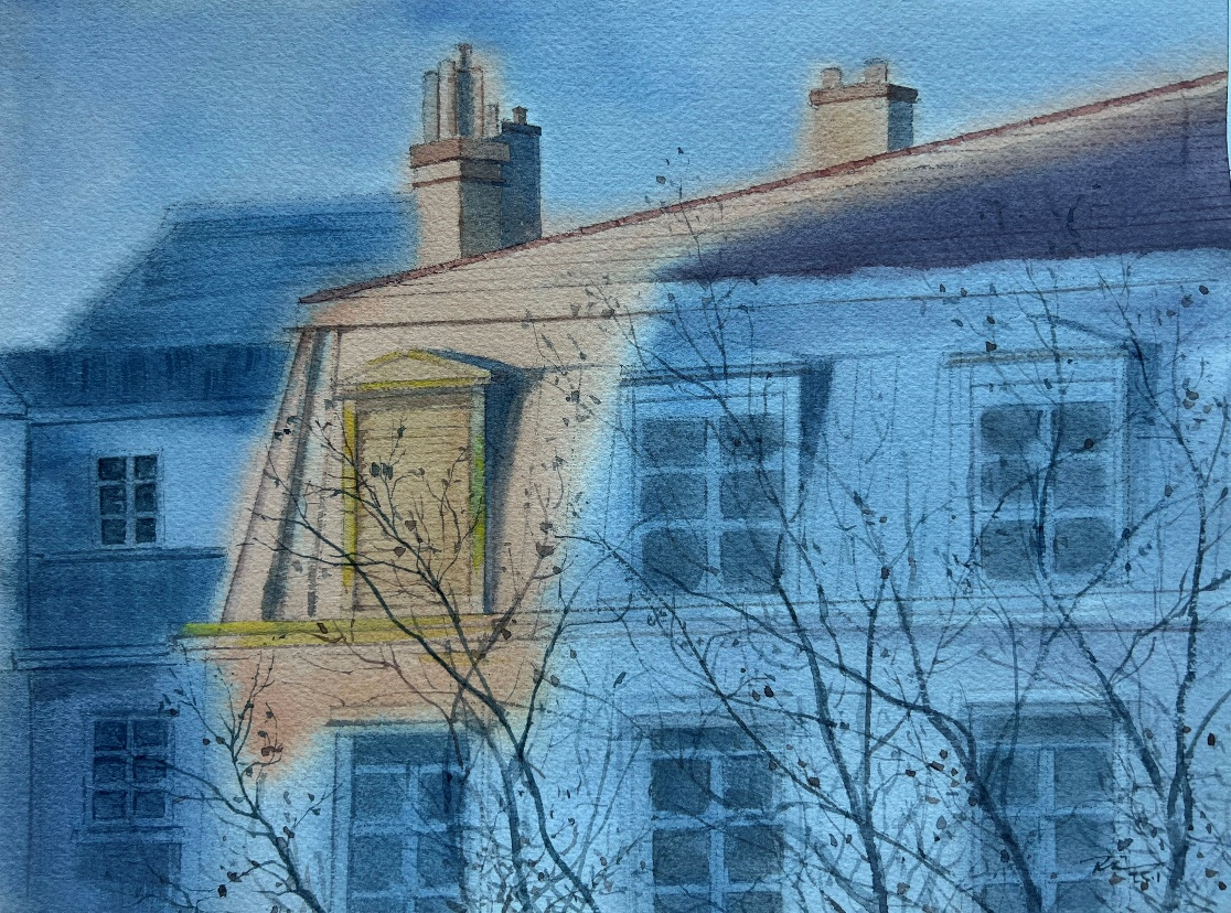 开幕式后,王赟平围绕本次展出的水彩作品为现场观众进行了细致深入的导览。他结合自身旅法创作实践与艺术研究心得,深入解读作品中中法艺术语言的碰撞融合,同时与现场观众展开积极互动,为观展活动赋予了浓厚的学术氛围与专业深度。